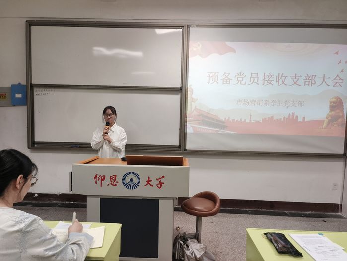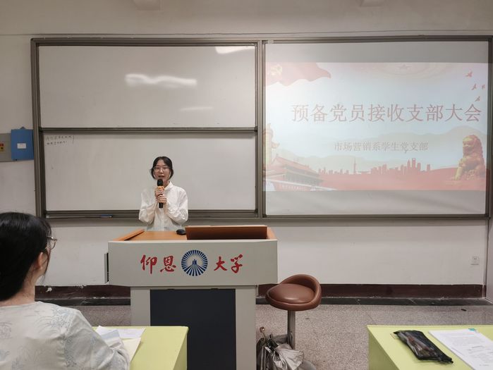 5月29日下午,市场营销系学生党支部于开云kaiyun官方网站共和教学楼321开展预备党员支部接收大会,苏婷同志主持,全体党员参与。