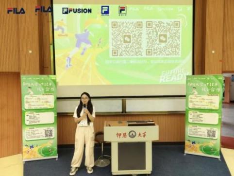 活动现场,FILA华南大区负责人何瑛娜向同学们介绍品牌经营管理理念。在互动环节,同学们积极提问,深入了解FILA经营结构和福利待遇,展现出了他们加入FILA团队的浓厚兴趣。