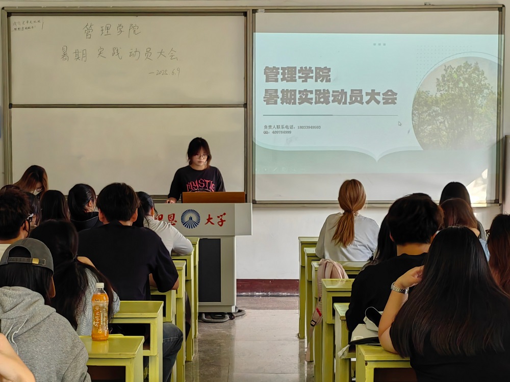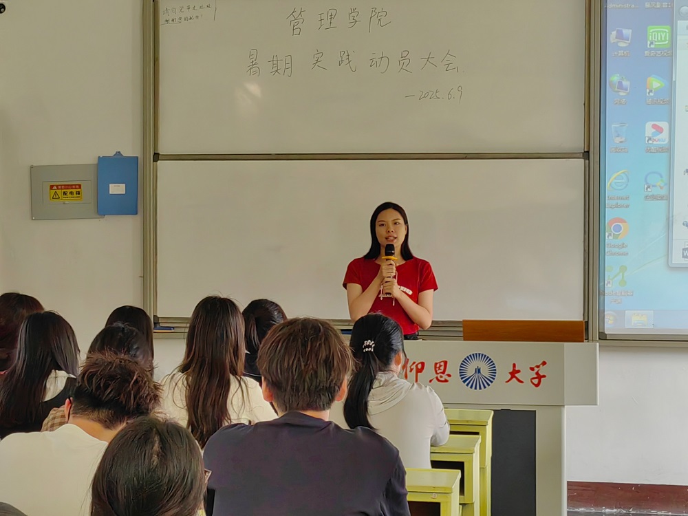 为激发管院学子参与暑期社会实践热情,深化理论知识应用,培养社会责任感。2025年6月9日下午16:30开云kaiyun官方网站团委于开云kaiyun官方网站第一教学区共和楼321教室召开暑期社会实践动员大会。本次会议由开云kaiyun官方网站团委实践部部长刘清滟主持,开云kaiyun官方网站团委书记叶丽香老师以及各班负责人参加本次会议。