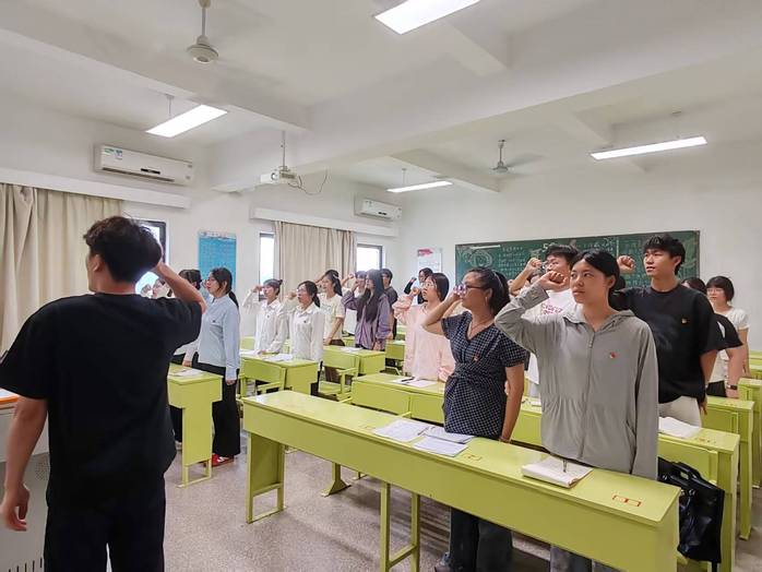党支部书记林有桂老师对新党员表示热烈祝贺,强调转正既是政治生命的新起点,更是责任与担当的新开端。他提出三点要求:首先,强调理论学习,筑牢思想根基,持续加强党性修养。其次,立足本职岗位,勤奋工作、刻苦学习,以实际行动诠释党员的先进性。最后,严守纪律规矩,始终保持对党的忠诚、践行党的宗旨。