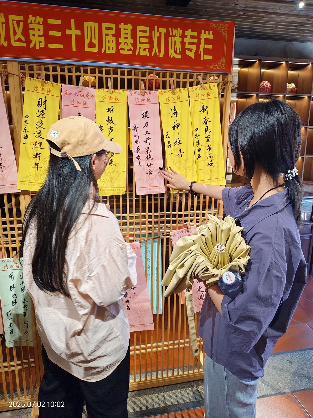 在互动体验环节,实践队成员们踊跃参与灯谜竞猜活动。面对馆内精心设置的各类灯谜,大家或凝神思考,或热烈讨论,在破解谜题的过程中,切身感受到了灯谜这一传统艺术的趣味性与挑战性。“通过猜灯谜,我深刻体会到传统文化的精妙,每个谜面都蕴含着丰富的知识和巧妙构思。”一位实践队成员感慨道。