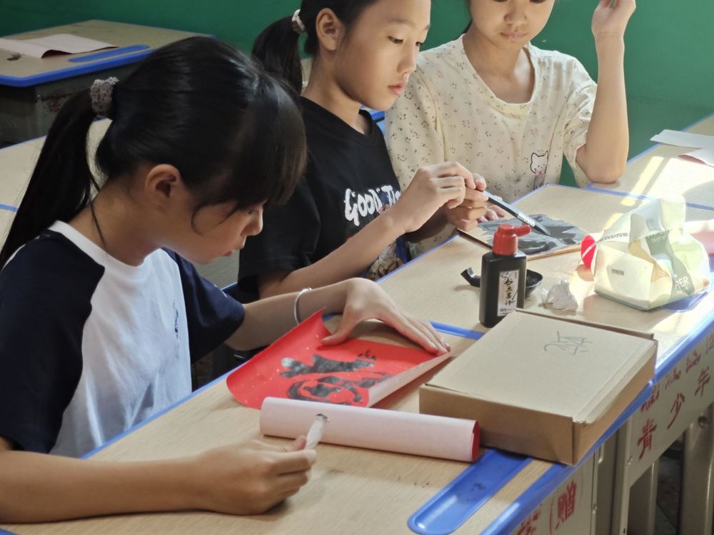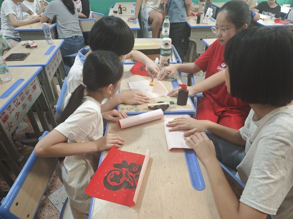 从刻板到宣纸的跨越间,实践队不仅让乡村孩童领略到非遗之美,更以实际行动诠释着新时代青年的文化担当。队员们表示,此次活动是文化传承的起点,未来将深耕非遗与现代教育融合,以更多趣味实践让古老文明在青年接力中焕发新生。
