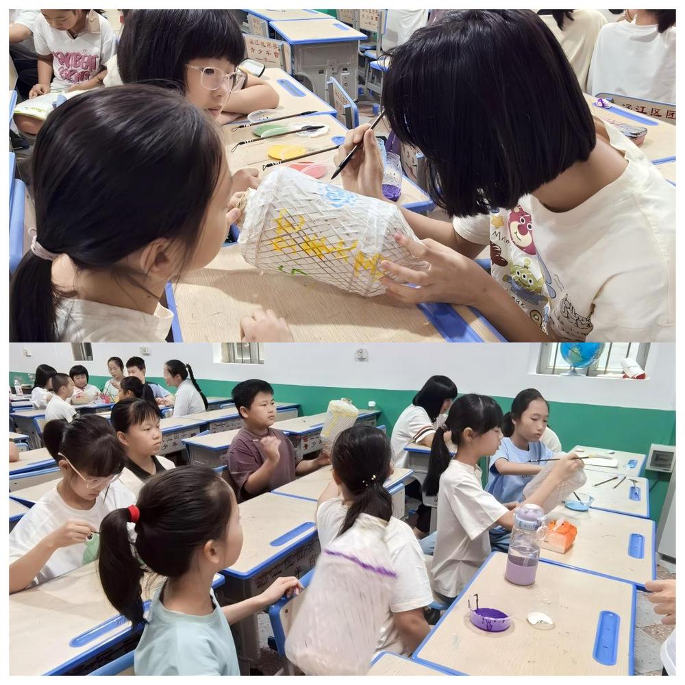活动现场,实践队员沈如钰详细讲解了油纸灯笼的历史渊源、制作方法和技巧。从挑选合适的竹篾编织骨架,到将薄而坚韧的油纸小心翼翼地粘贴在骨架上,再到绘制精美的图案进行装饰,每一个步骤都蕴含着独特的韵味和讲究。讲堂上孩子们认真聆听,积极互动。小朋友们在实践队员的协助下,发挥天马行空的想象力,用画笔在油纸上勾勒出有趣的线条,写下美好的祝福语,承载着孩子们对生活的美好期许,更成为了传统文化传承的载体。