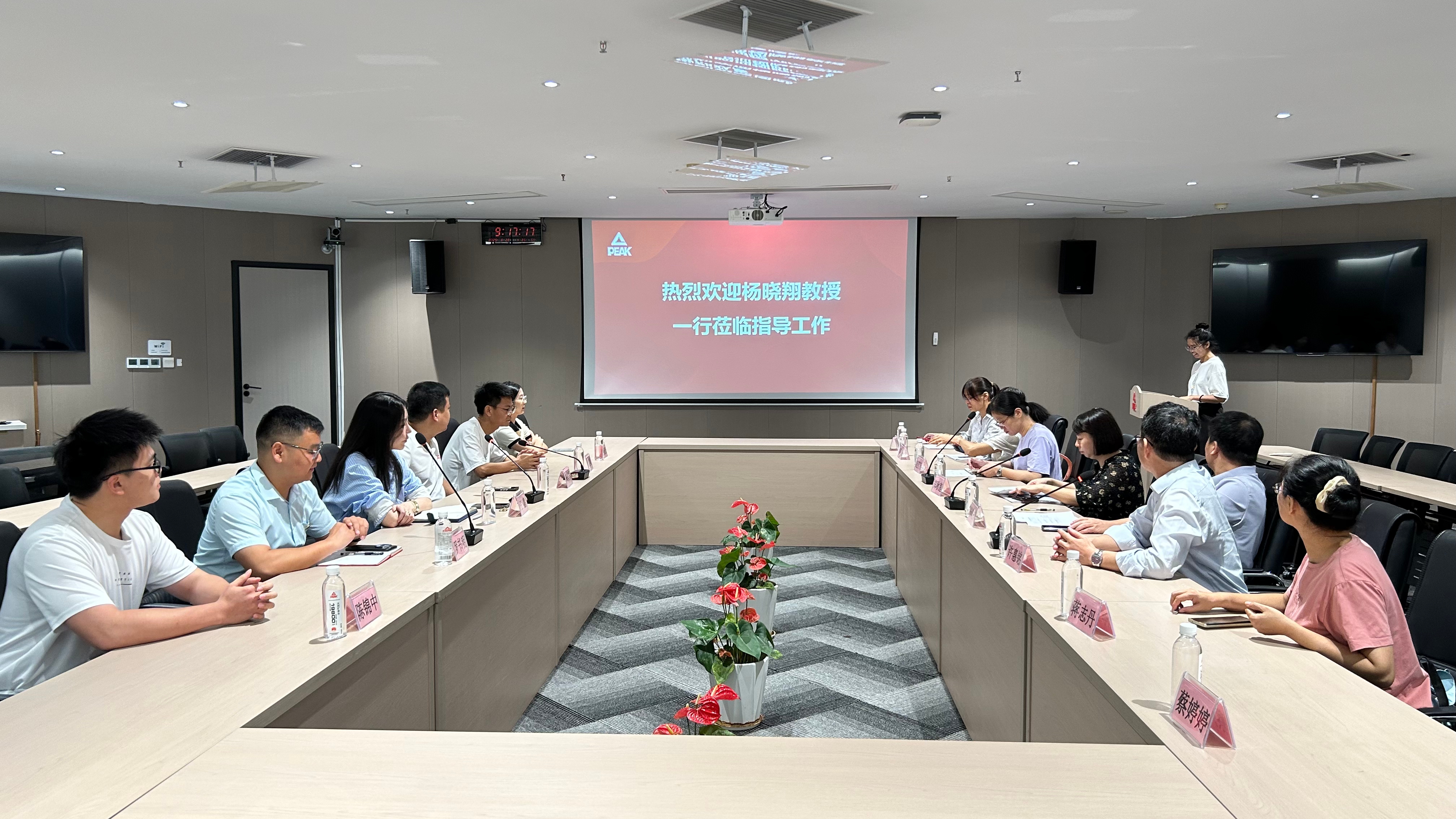 参观结束后,考察座谈会在匹克(中国)有限公司会议室召开交流会,培训专员黄小珊代表企业致欢迎词,系统介绍了双方校企合作的成果、合作模式及未来规划,充分展现了企业对校企协同育人的重视与投入;工商管理系主任蒋志丹代表学院向考察团介绍了实践教学基地在学生实习安排、就业输送、合作项目推进等方面的具体情况,强调了实践基地匹克(中国)有限公司在对提升学生学生专业实践能力的关键作用,并对匹克(中国)有限公司在学院人才培养方面作出的努力表示衷心的感谢。