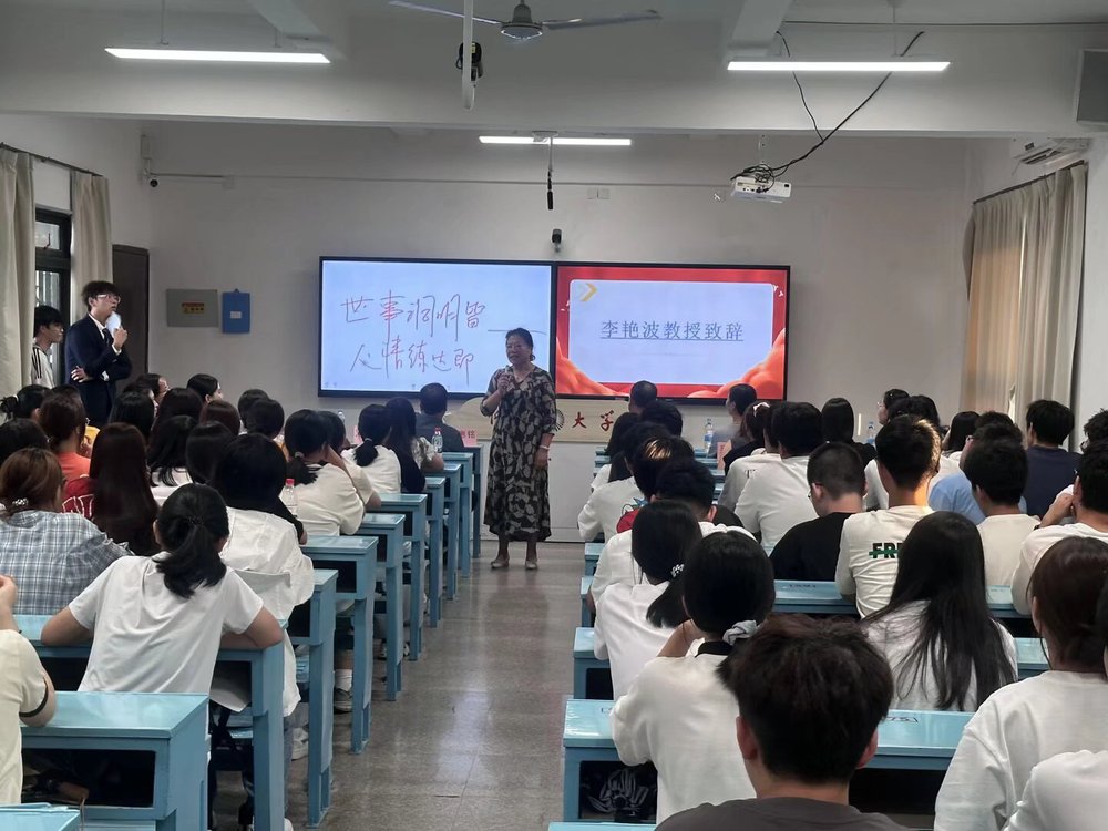 大会开场,主持人王鹏宇欢迎并介绍参会师生,现场掌声欢呼声不断。市场营销系主任李瑞松老师结合案例做了专业简介,分析了市场环境以及专业发展前景,帮助新生对专业有了初步的认知。在学长学姐分享环节,满满的实用干货让新生们收获颇丰,范灵璇学姐细致讲解了课程学习方法与实践经验,李英杰学长则围绕生活规划给出贴心建议。他们真诚的分享有效缓解了新生初入校园的迷茫感。师者寄语环节,刘和平教授叮嘱大家珍惜时光、找准优势,李艳波教授则强调专业能力,鼓励同学们牢记校训、自立自强,勇于突破自我。两位教授的殷切寄语,让在场新生备受鼓舞。现场播放了往届市场营销系学生的校园风采以及优秀毕业生学长学姐的寄语视频,帮助同学们更好的了解即将开启的大学生活。进入互动答疑,新生们踊跃提问课程、实践等问题,学长学姐耐心解答,拉近距离、化解困惑。最后,辅导员洪晓徽老师也表达了对大家的诚挚祝福,希望25级新生们在大学期间收获满满,过得充实而精彩。