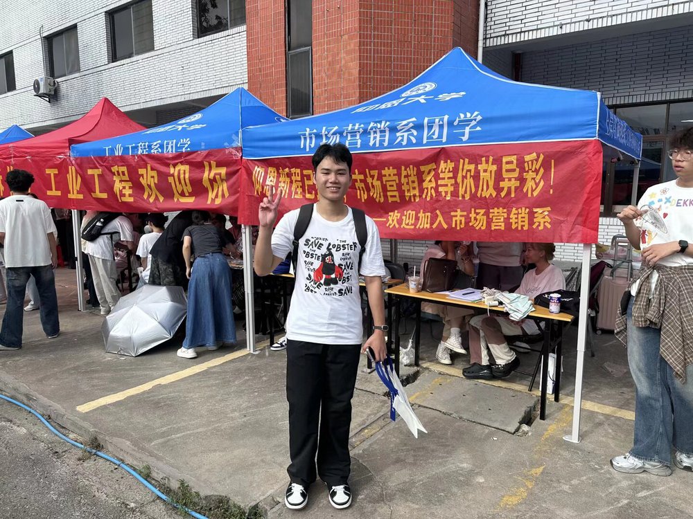 迎新现场气氛热烈,秩序井然。我系精心布置现场,搭建帐篷,清晰标注流程指引。市场营销系团学成员们分工明确、默契配合,分别在接待点和宿舍区为新生进行引导。迎新帐篷里的成员们为前来报到的新生家长们提供扇子和水并进行答疑解惑,帮助新生及家长们更好了解校园情况;分配到宿舍区的成员则负责帮助新生搬运行李,指引新同学前往注册点及宿舍楼区。市场营销系用每一处细节,让2025级市场营销学子们刚踏入校园,就真切感受到了市场营销系大家庭的包容与温度,也提前触摸到了大学生活的鲜活与活力。