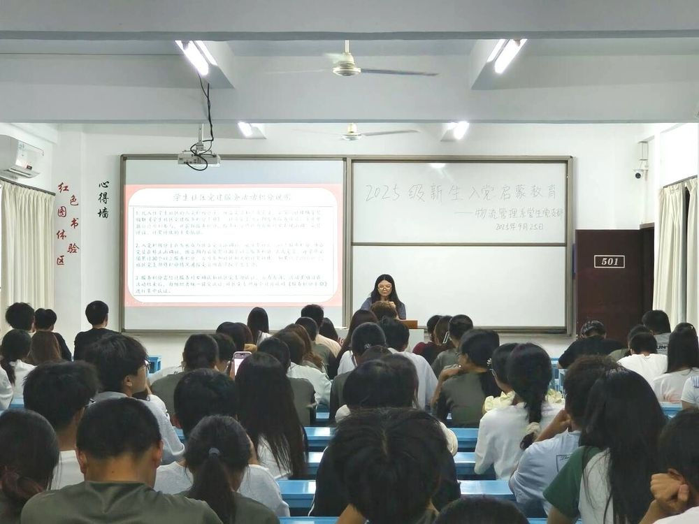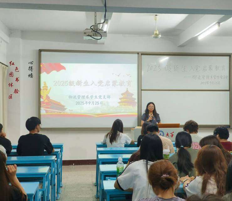 为引导2025级新生树立正确的入党动机,明确入党流程与标准,2025年09月25日物流管理系学生党支部于吉龙楼501组织开展新生入党启蒙教育活动。本次活动由张燕真同志主持,2025级物流管理系全体新生参与。