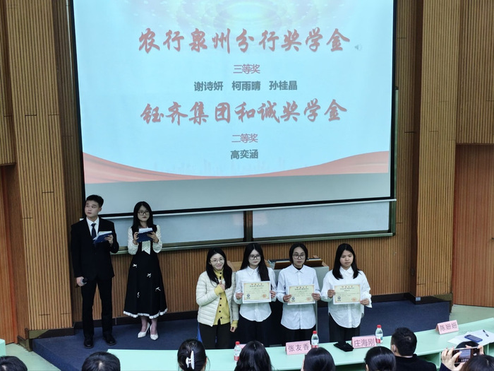大会开场,黄雯仪老师发言,肯定学子拼搏精神与优异成绩。在体育领域中,颁布班级及个人体育道德风尚奖、优秀运动员与优秀工作者等相关奖项,此份嘉奖,致敬运动员的奋勇争先,亦感念工作人员的风雨同舟。学业与荣誉方面,颁布校级院级优秀干部及三好学生,这份表彰,致敬优秀干部的无悔奉献,亦称颂三好学生的不懈奋进。同时2023级人力1班获评校级先进集体。奖学金评选中,谢媛丽斩获国家奖学金与吴庆星奖学金,林嘉静、田颖等获国家励志奖学金,另有多名同学分获仰恩奖学金、农行泉州分行奖学金等各类专项奖学金。大会尾声,HRU各赛道获奖代表还分享了实践经验与备赛技巧,并向指导老师表达了由衷的感谢。