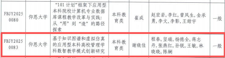 近日,福建省教育厅公布2025年度本科高校教育教学研究项目立项名单。我院谢晓佳老师主持申报的《基于知识图谱和虚拟仿真的应用型本科高校管理学科数智教学模式创新研究》成功获批省级立项。