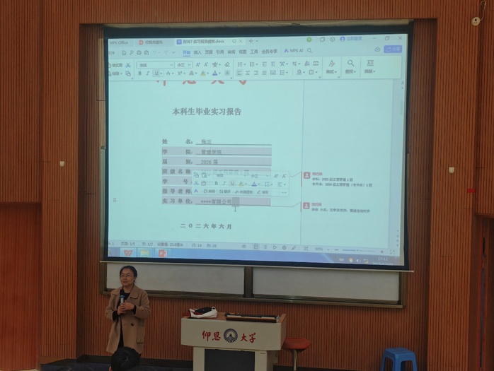 蒋志丹老师围绕毕业生关切的核心事宜展开详细说明。在毕业实习安排方面,她要求同学们严格遵守实习单位规章制度与学校实习管理要求,珍惜实践机会,主动将理论知识与实际工作相结合,在实践中积累经验、锤炼本领;针对毕业论文撰写,她着重提醒同学们务必重视论文质量,扎实掌握论文核心内容,提前做好答辩准备,以严谨的态度应对答辩环节的各项提问。