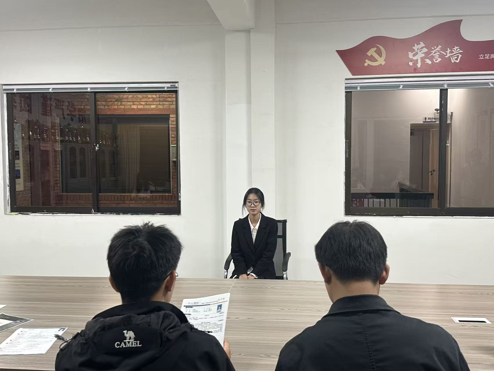 面试现场过程中,候选人们精神饱满、从容自信,围绕共青团工作的时代内涵、自身学生工作履历及优势特长展开阐述,分享了组织策划活动的实践经验,结合新时代青年工作要求,畅谈了团务工作的创新思路与务实举措。在提问答辩环节,面对评委老师围绕组织协调、应急处理、服务意识等维度的提问,候选人们沉着思考、逻辑清晰,以扎实的业务认知和灵活的应变能力展现了当代青年的责任与担当,传递了服务同学、奉献集体的决心。评委老师们秉持“公平、公正、公开”原则,从综合素质、工作能力、创新思维等方面全面考量,力求选拔出政治过硬、本领高强的优秀团组织骨干。