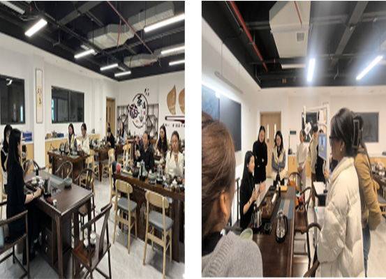 下午的培训聚焦于茶道流程。龚老师亲自示范,从茶具的选用与保养,到泡茶的基本步骤与技巧,再到行茶中的礼仪规范与意境营造,每一个环节都悉心传授、耐心指导。老师们认真聆听、积极实践,在一招一式中感受着茶道的优雅与深邃,现场茶香四溢,氛围宁静而祥和。