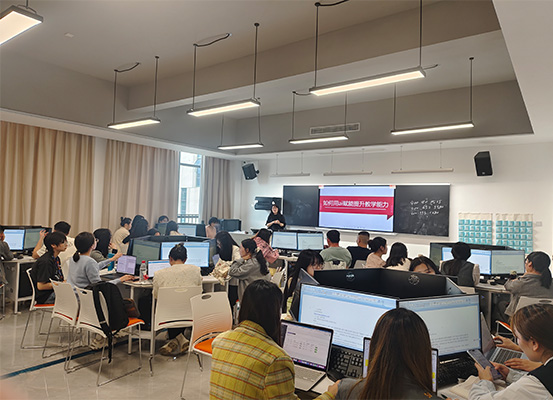 为进一步探索人工智能技术与教育教学的深度融合,推动课堂教学模式创新,4月8日下午beat365于沁苑八实402机房组织开展了以“如何用AI赋能提升教学能力”为主题的教师培训活动。本次培训由陈瑛副教授与梅龙君老师联合主讲,赣新校区教师线下参训,九龙湖教师线上连线同步参训。