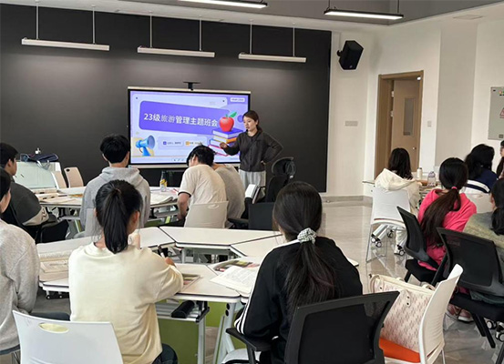 见面会上,班主任们以“专业启蒙者”身份,结合学科特点与行业趋势,系统解读各专业人才培养方案。班主任袁院长通过“课程体系地图”,直观展示知识模块的递进关系,强调“基础课程筑牢根基、实践环节锻造能力、创新项目拓宽视野”的成长逻辑;旅游专业班主任周老师则以“语言+跨文化能力”双核模型为框架,解析复合型人才培养路径,鼓励同学们在知识学习中融入国际视野。