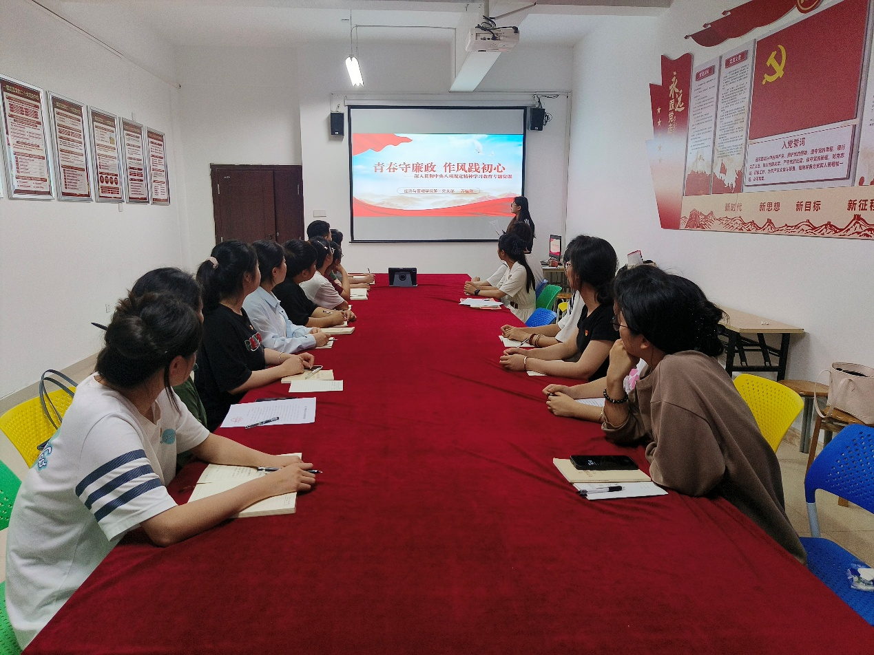 万佳欣表示,学生党员作为学生群体中的先进分子,一言一行都对身边的同学有着重要的示范作用。希望大家以中央八项规定精神为指引,在青春的道路上坚守廉洁自律,践行初心使命,以良好的作风和精神风貌,为实现中华民族伟大复兴的中国梦贡献自己的青春力量!