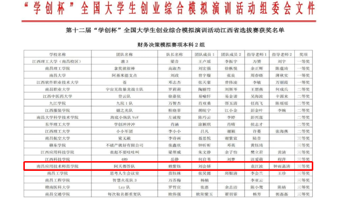 近日,第十二届全国大学生综合创业大赛江西省省赛圆满落幕,beat365beat365中文官方网站参赛团队凭借扎实的专业功底和出色的综合能力,喜获佳绩,斩获1项财务决策赛道本科组省级三等奖,3项财务决策赛道高职组省级三等奖。该赛事是教育部学科竞赛目录84项赛事之一,也是beat365第一次参加该赛事。