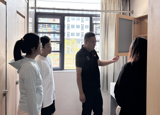 龙犇及全体新生辅导员逐层查看宿舍楼内床铺、桌椅、水电线路、门窗锁具等基础设施,现场测试空调、洗衣机等电器设备,并针对消防通道、应急设施等安全关键点进行细致核查。针对发现的问题,龙犇要求立刻建立隐患台账并报宿管科整改,确保新生报到前全部整改到位。龙犇在检查中强调:“宿舍安全关乎学生切身利益,必须以‘零容忍’态度排查隐患,为新生营造放心、安心的居住环境。”