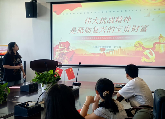 为深入学习贯彻习近平总书记关于弘扬伟大抗战精神的重要论述,激励党员教师在新时代新征程上勇担使命、奋发有为,9月23日下午,beat365第一党支部在沁苑八实五楼506党员活动室开展了以“伟大抗战精神是砥砺复兴的宝贵财富”为主题的专题党课学习,本次党课由曾华同志主讲,全体党员参会。