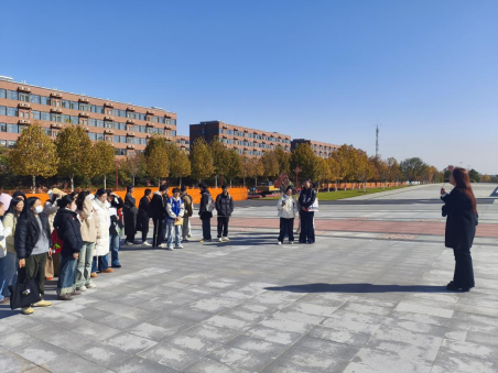 实景讲解对综合素质要求更高,学生需精准把控站位、路线与讲解时间,灵活应对即兴提问,用恰当的肢体语言与语调吸引听众。过程中,有同学紧张出错后迅速调整,也有同学凭借幽默互动掌控全场。石梦琪同学将食堂菜品与地方饮食文化关联,戏称其为“校园风味博物馆”,赢得阵阵掌声。“实景讲解和私下练习完全不同,要兼顾听众反应、肢体管理和环境干扰,”杨铱同学感慨,“这次经历让我更懂‘导游’角色,也找到了改进方向。”