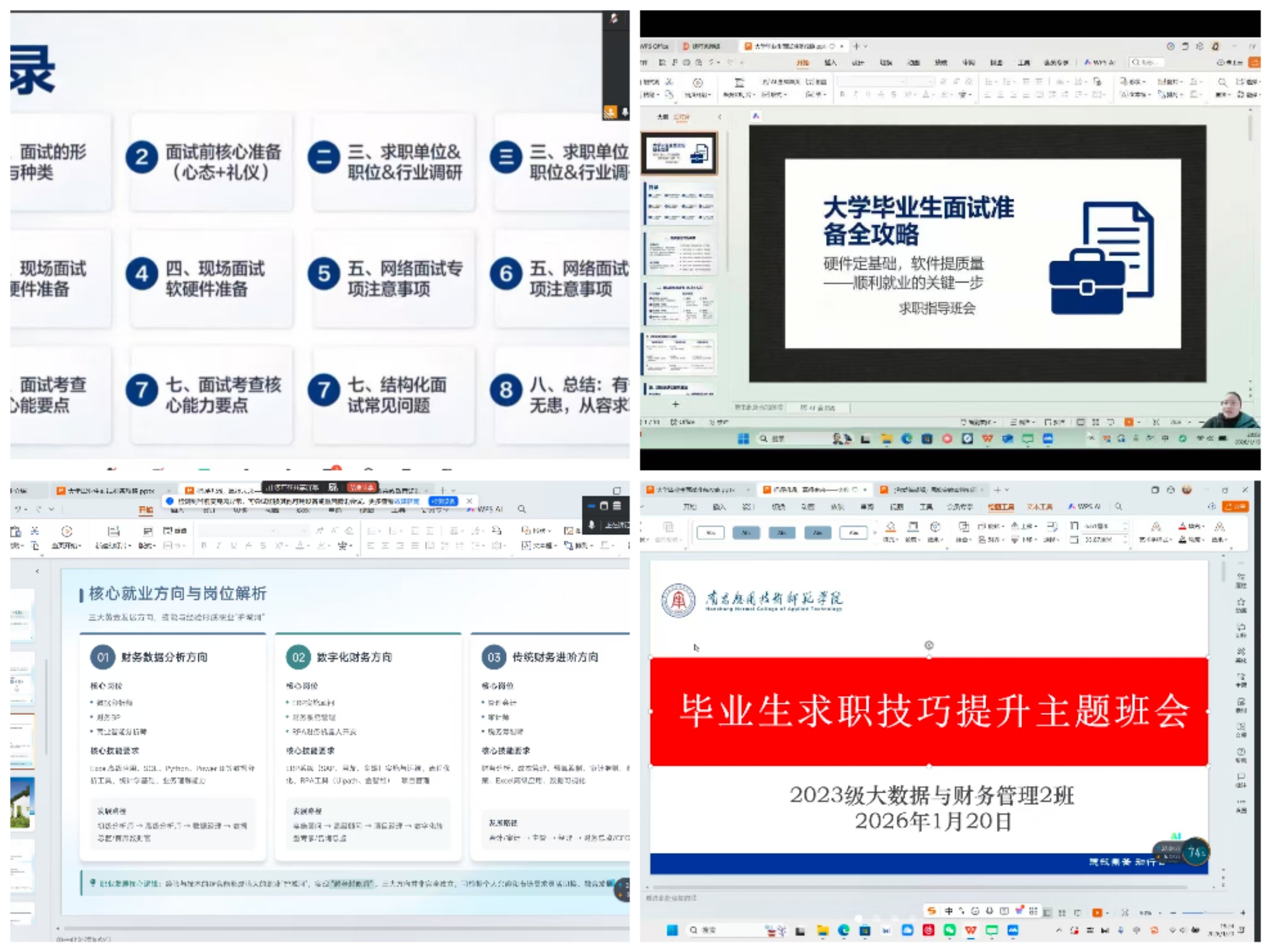 本次班会立足于“关键时间”与“关键阶段”的双重定位。一方面,寒假期间各类招聘考试密集开展、企业春季招聘陆续启动,正是毕业生落实去向的黄金期;另一方面,毕业生处于职业生涯规划的深化期与冲刺期,亟需科学引导与心理支持。班会上,辅导员们结合往年就业数据与当前市场动态,分析了不同专业领域的就业趋势与机会,提醒毕业生合理设定目标、积极把握机遇。同时,针对简历撰写、面试技巧、信息搜集等方法开展了讲解,助力学生提升求职竞争力。对于备战考研考公、资格考试的学生,辅导员也分享了时间管理方法与备考资源,鼓励学生利用假期实现突破。