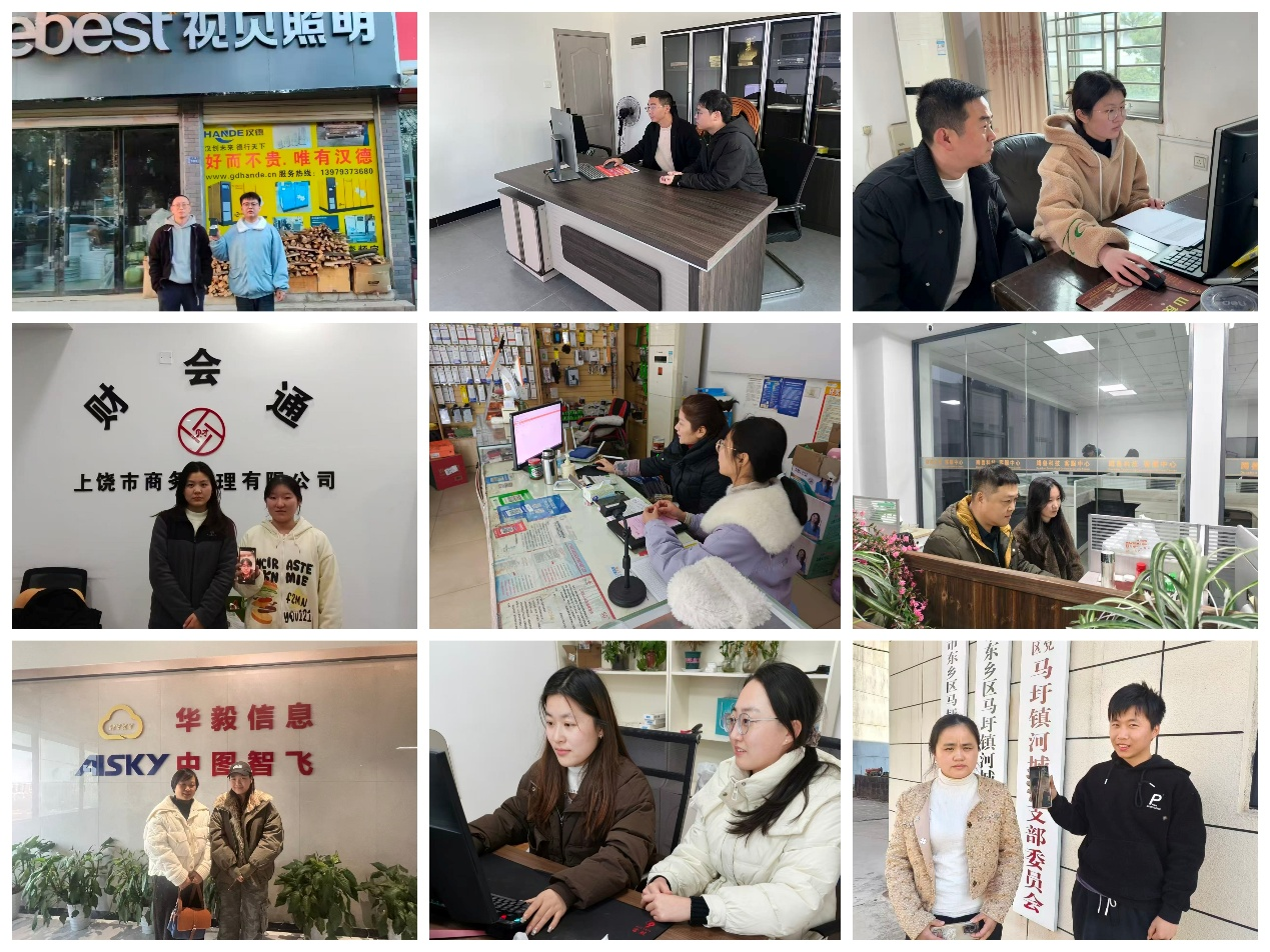 此次访企拓岗行动聚焦数智财经专业特色与市场需求,走访企业地域分布广泛,涵盖江西、江苏、广东、安徽、福建等多个省份,既包括报喜鸟控股股份有限公司、易视腾科技股份有限公司等行业龙头企业,也有亿企薪福网络科技有限公司江西分公司、畅捷通信息技术有限公司等深耕数智服务领域的标杆企业,同时兼顾上饶市财会通商务代理有限公司、大余县新隆会计服务有限公司等区域优质本土企业,形成了 “龙头引领、骨干支撑、本土联动” 的多元化企业合作矩阵。