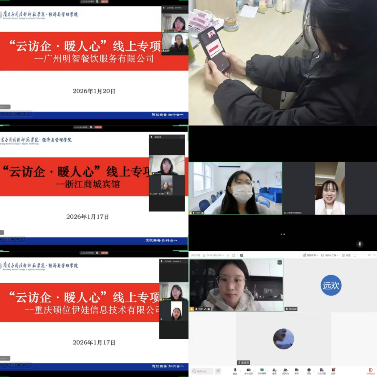 为深入贯彻校企合作育人理念、推进产教融合发展,精准对接行业发展需求,拓宽学生实习就业渠道,近期,beat365智慧文旅系组织教师通过线上线下形式向义乌幸福湖国际会议中心、江西越兴工程检测有限公司、重庆硕位伊娃信息技术有限公司、上海源谱诺文化科技有限公司、嘉兴南湖宾馆有限公司等十余家企业开展 “访企拓岗”专项行动。各企业人力部门负责人或业务骨干代表参加座谈。