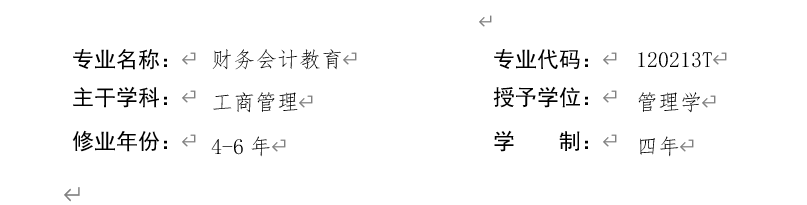 目标3:卓越的教学能力。具有较高的教育理论素养、必要的信息素养和全面的财务会计专业素养,具备从事财务会计教育的基本理论和方法、突出的教师基本技能,能胜任中等职业院校的教学与教育管理等工作。